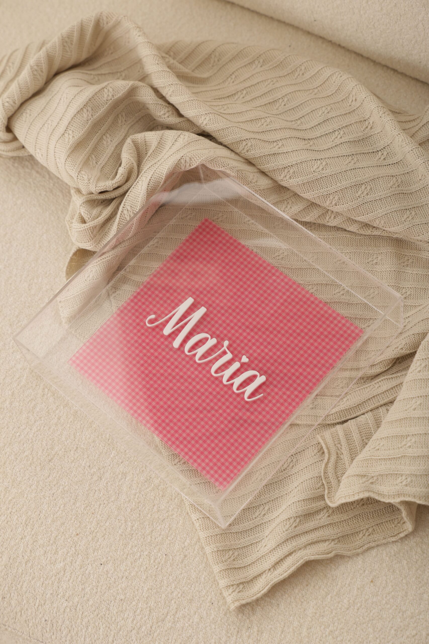 Caixa em acrílico cristal 3mm + acrílico colorido 3mm
